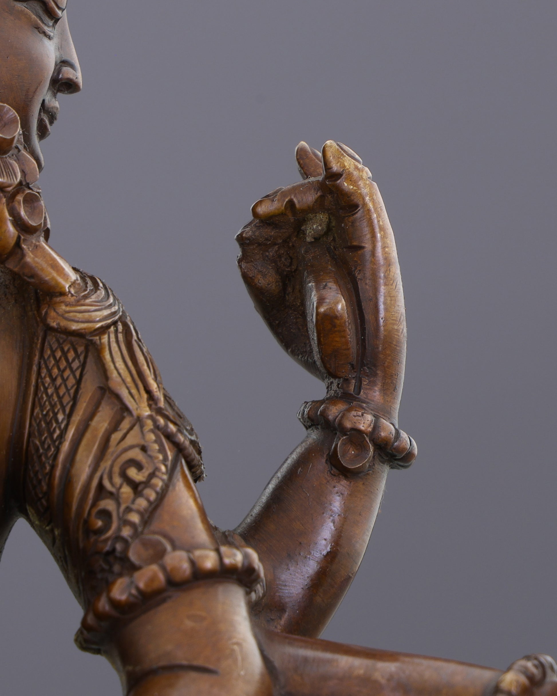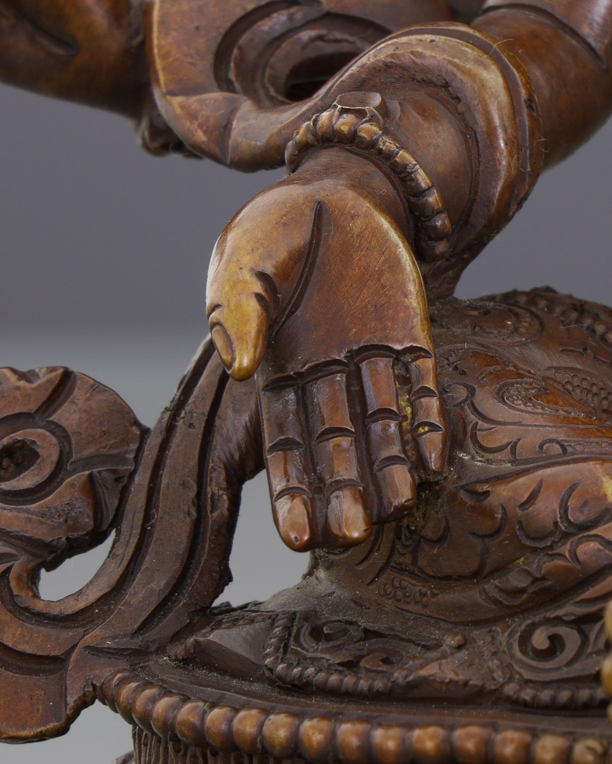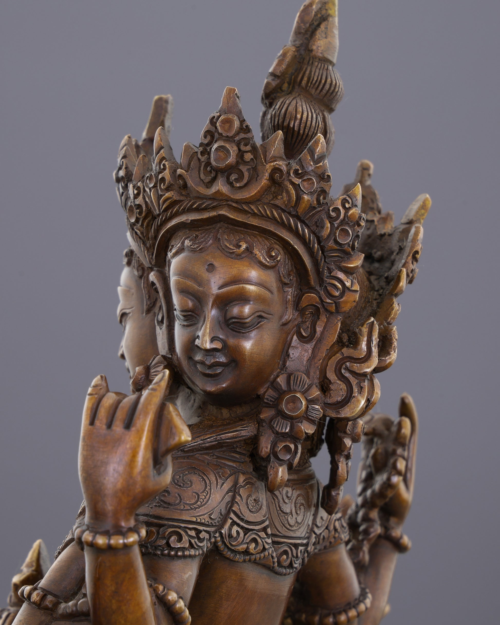 Materials: Oxidized copper body, intricate carvings