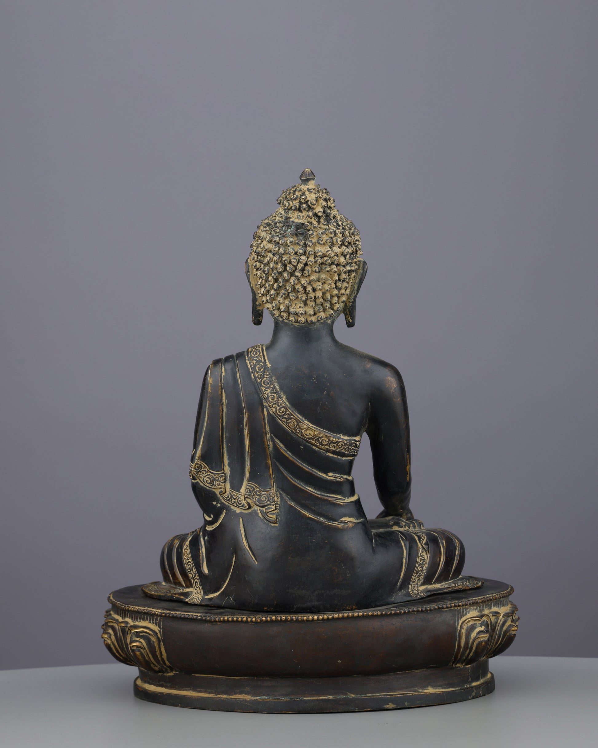 This statue embodies enlightenment's timeless nature. The earth-touching gesture represents truth's victory over illusion and unwavering commitment to awakening. The lotus throne symbolizes purity rising unstained from samsara's mud. The ushnisha atop his head signifies expanded consciousness. The antique patina itself becomes symbolic—showing that dharma transcends time, remaining relevant across centuries. His grounded presence teaches that enlightenment happens in the present moment.
