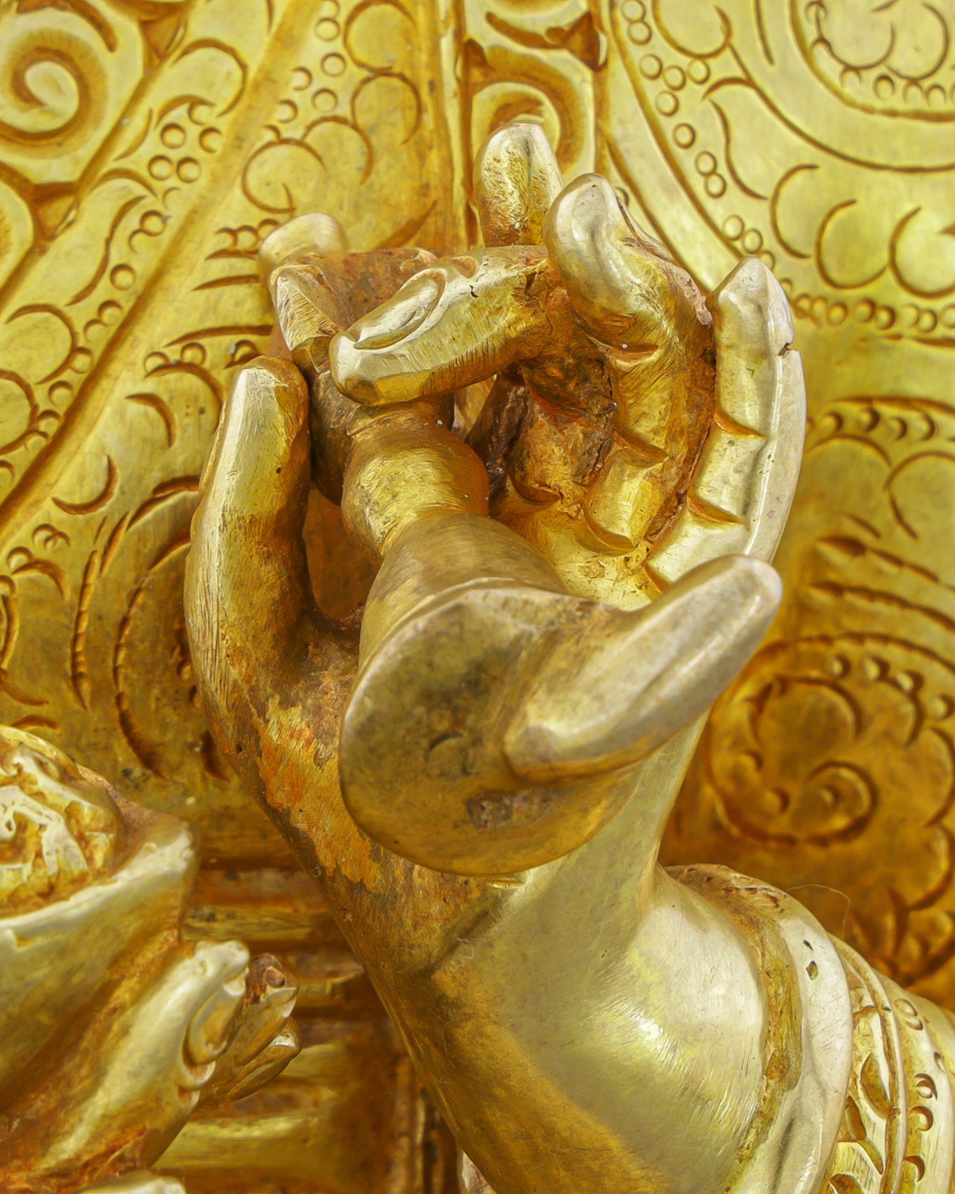 This masterpiece showcases exceptional craftsmanship through the ancient lost wax method, ensuring intricate detailing impossible with conventional techniques. The 24K gold gilding radiates divine luminosity, while the copper body provides durability and spiritual conductivity. The harmonious blend of gold and acrylic paintings highlights the ornate robes and facial features, creating a captivating visual meditation focus that bridges earthly beauty with transcendent wisdom.