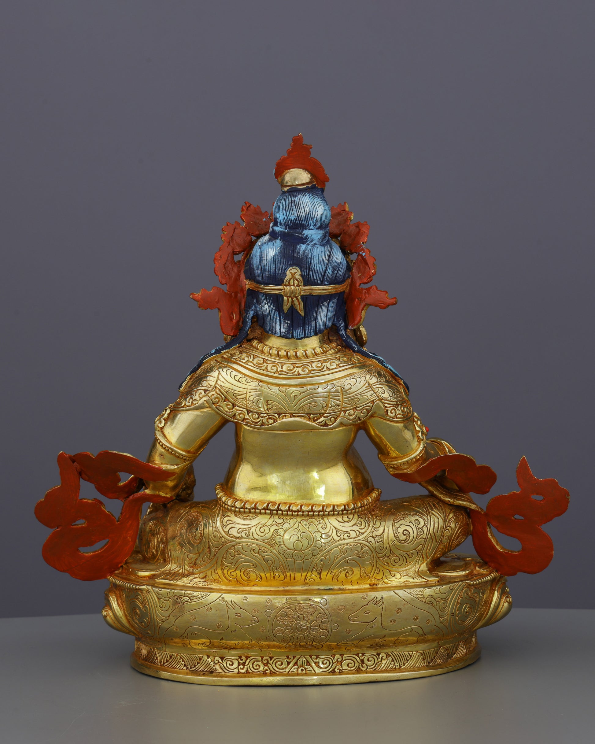 Experience the divine energy of prosperity with this exquisite Dzambhala statue, masterfully handcrafted by skilled Nepalese artisans. This sacred wealth deity embodies abundance, generosity, and spiritual richness, bringing blessings of prosperity to your sacred space.
