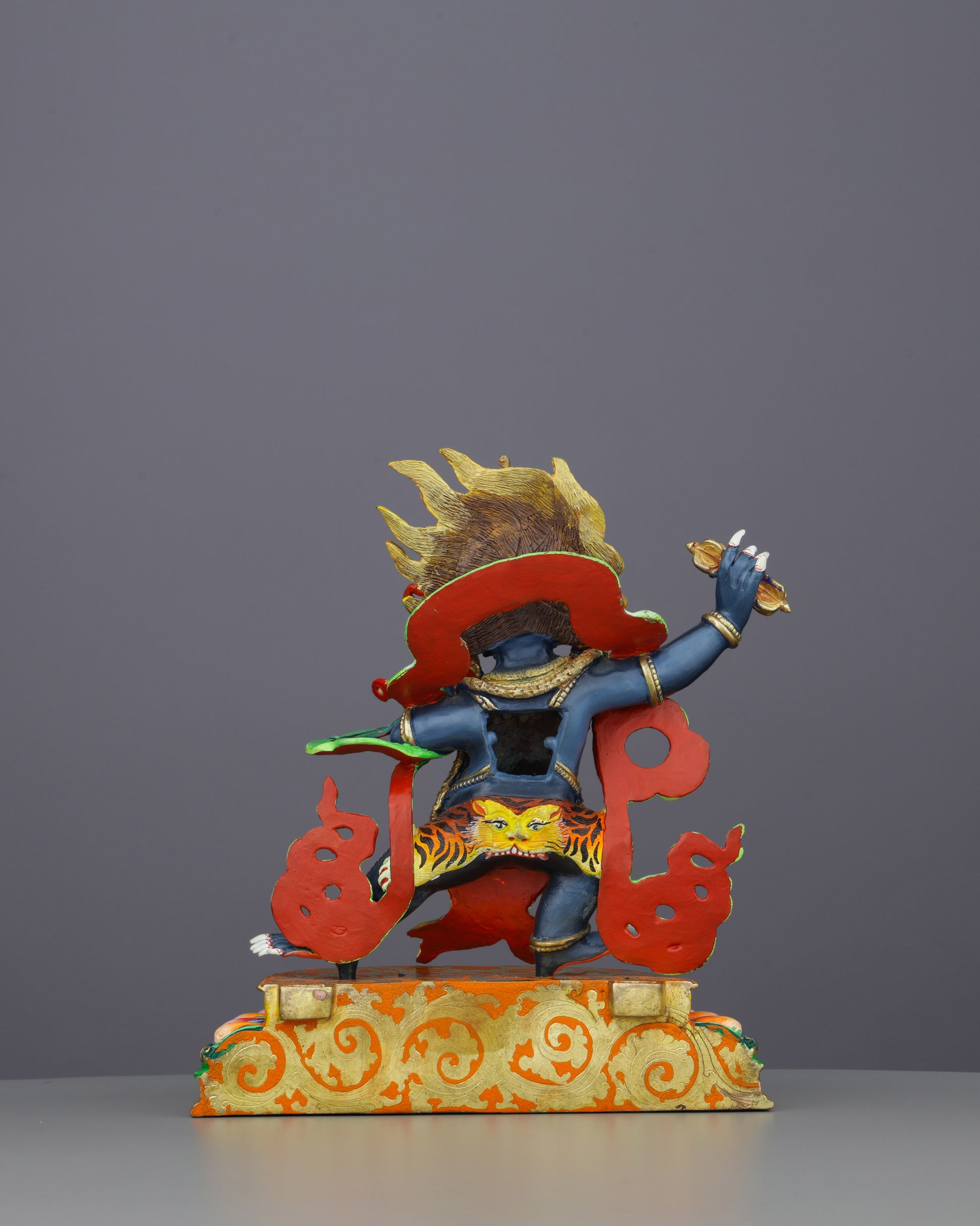This awe-inspiring Vajrapani statue radiates fierce compassion through its dynamic posture and brilliant flame aureole. Meticulously handcrafted by master Nepalese artisans, this wrathful deity embodies boundless spiritual energy, featuring vivid acrylic paintings and precious gemstone inlays that capture the protector's transformative power.