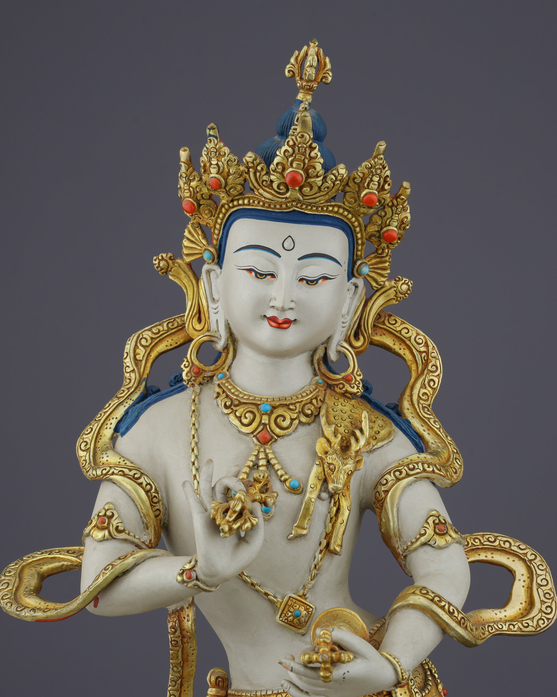 Majestic Vajrasattva | 24K Gold-Gilded Copper Statue with Precious Gemstone Inlays