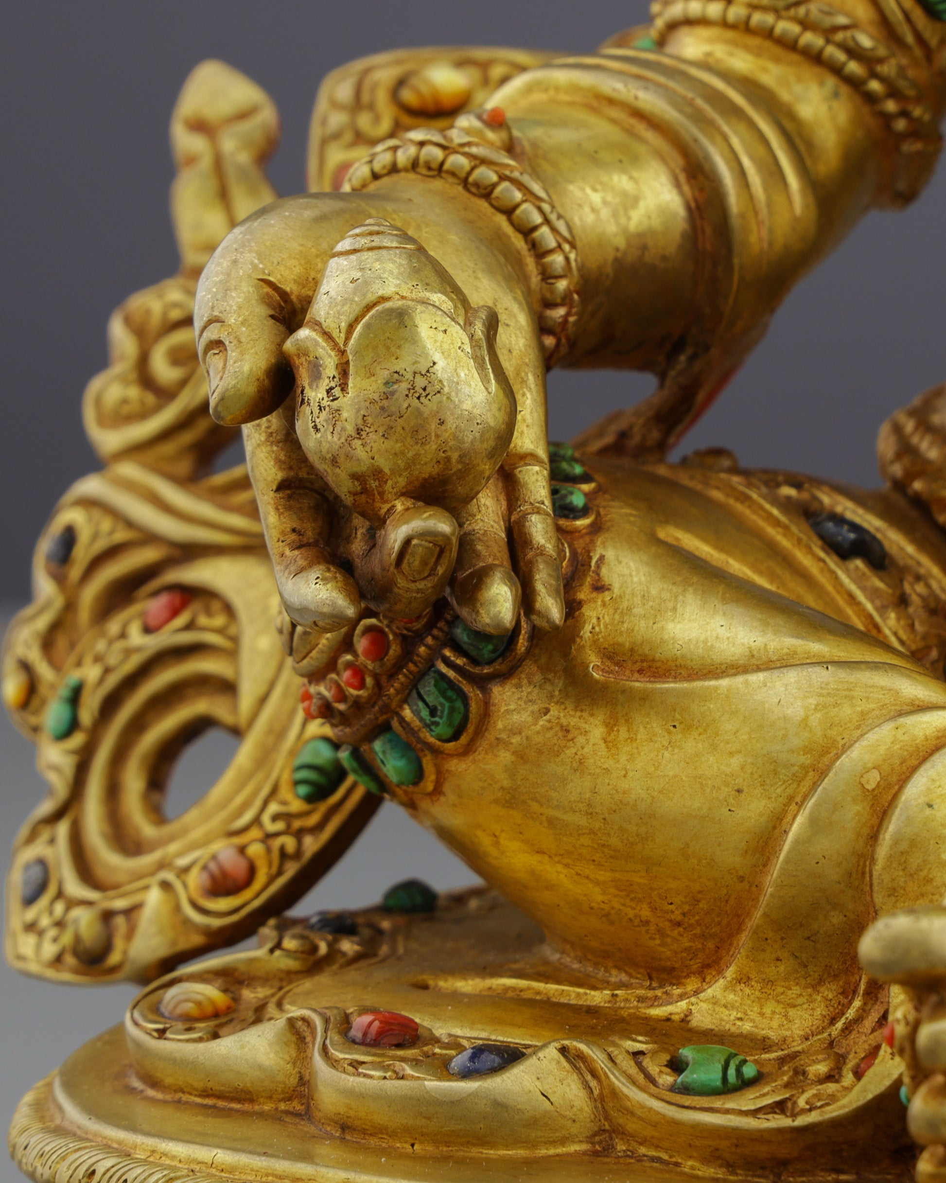 This extraordinary masterpiece showcases exceptional Nepalese craftsmanship with exquisite 24k gold gilding and intricate detailing. The hand-carved turquoise, coral, lapis, and pearl gemstones add sacred authenticity and powerful energy, making this an invaluable spiritual asset for homes, meditation spaces, and prosperity altars worldwide.