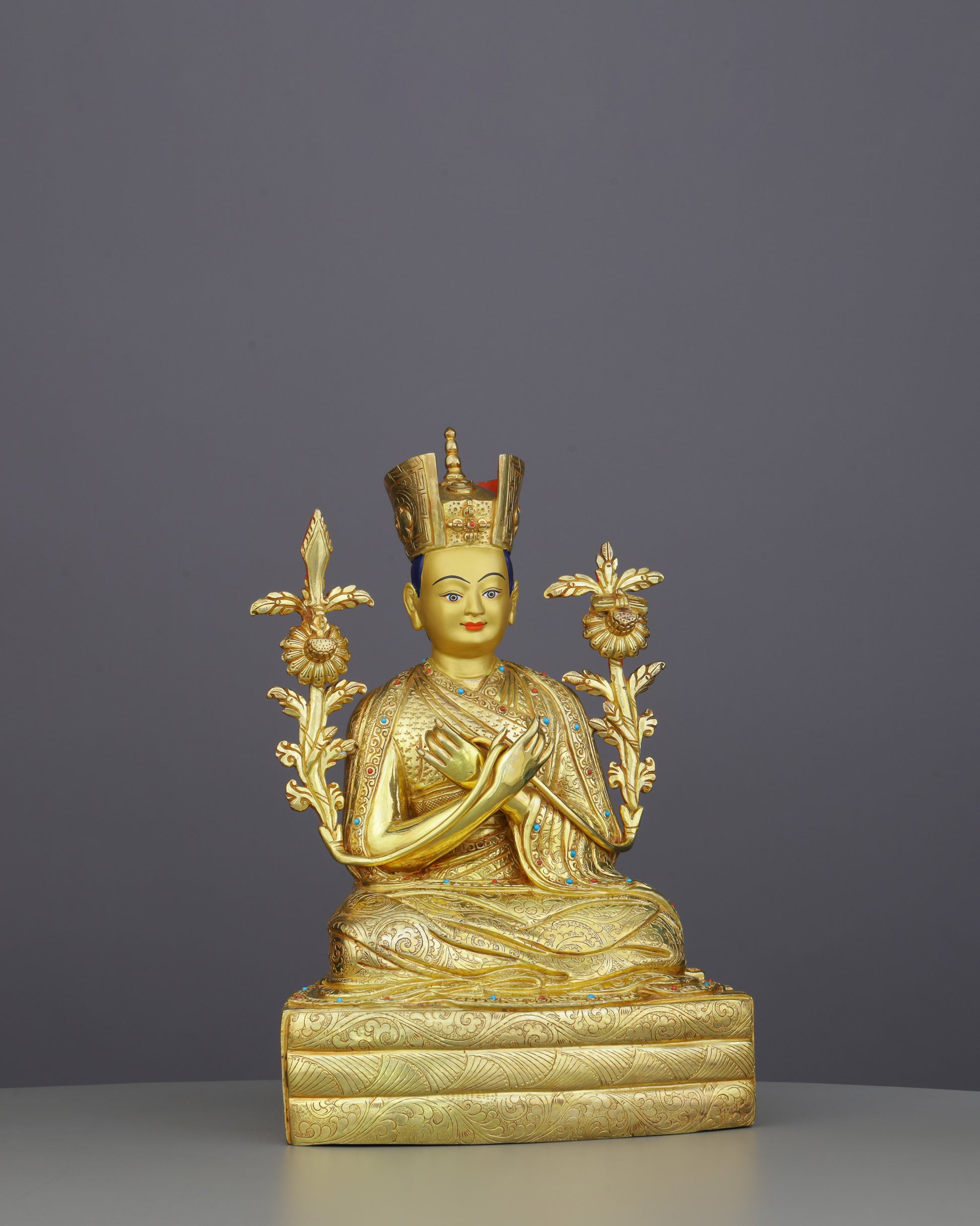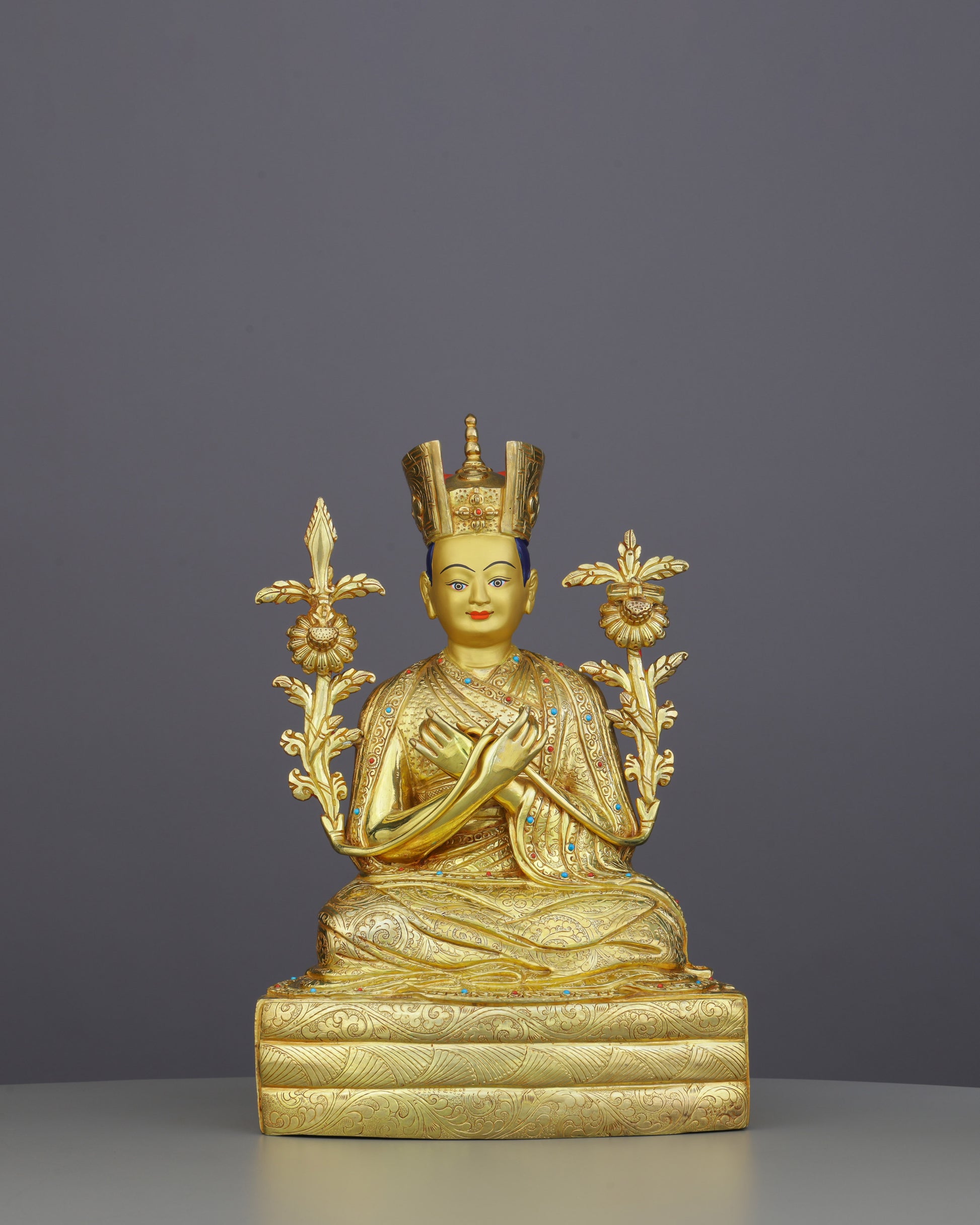 Radiant 24K Gold Gilded 16th Karmapa Statue | Living Legacy of Tibetan Buddhism