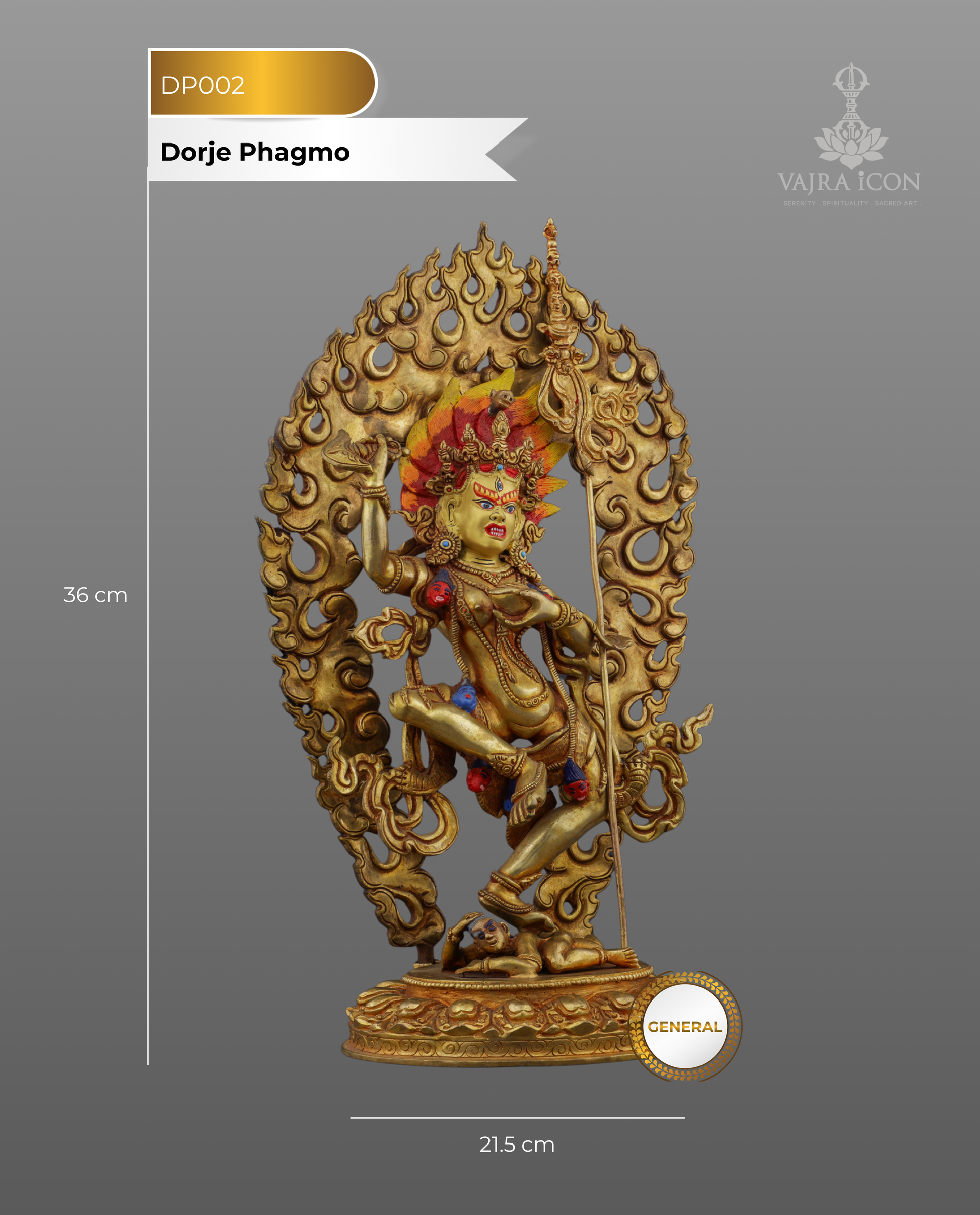 Rooted in the Vajrayana tradition, Dorje Phagmo represents the wisdom dakini who "dances in the sky of emptiness." The Sanskrit term "Vajravarahi" combines "vajra" (thunderbolt/diamond) with "varahi" (sow), symbolizing indestructible wisdom that fearlessly confronts spiritual darkness.