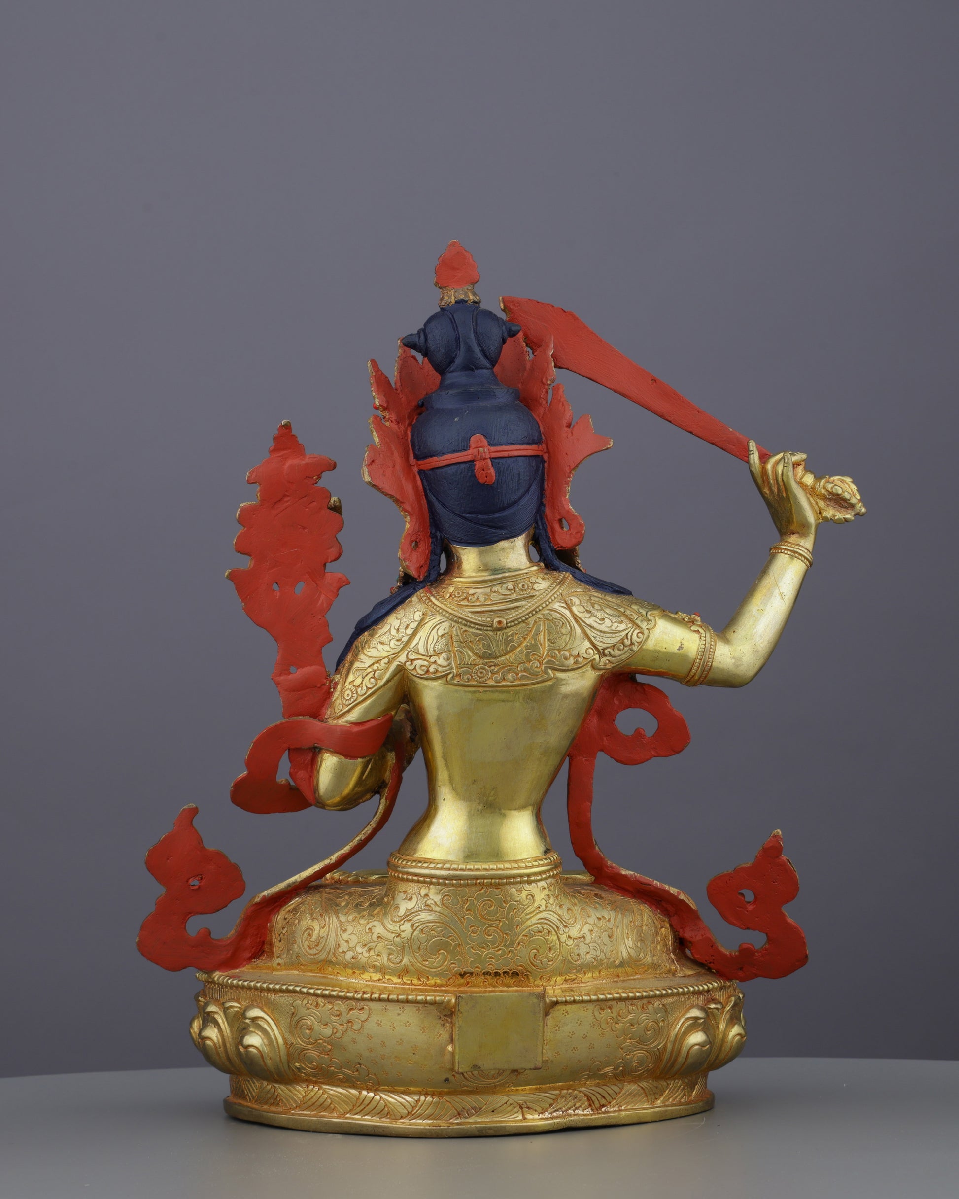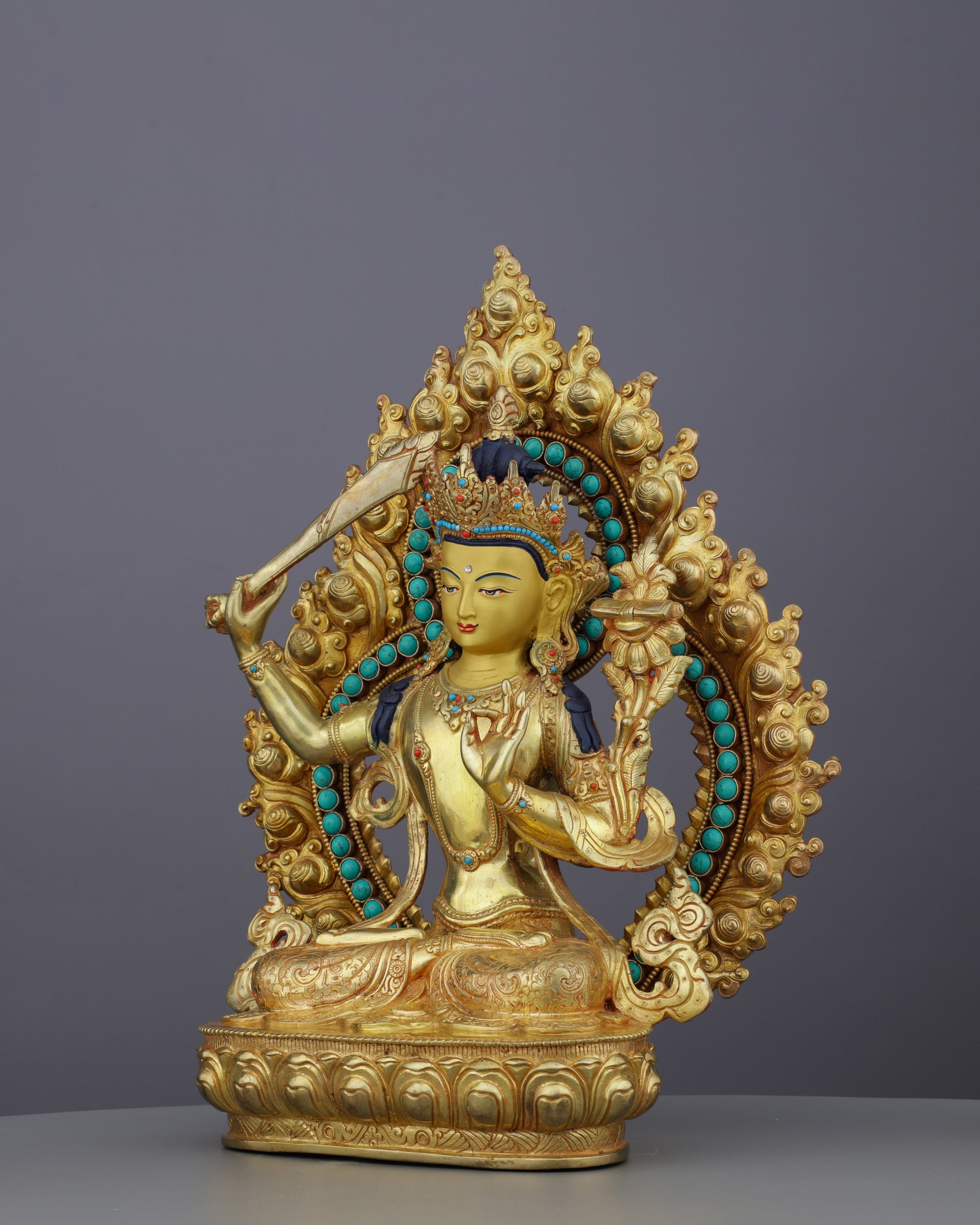 Sword of Wisdom | Magnificent 24K Gold Gilded Manjushri Buddha Statue from Nepal