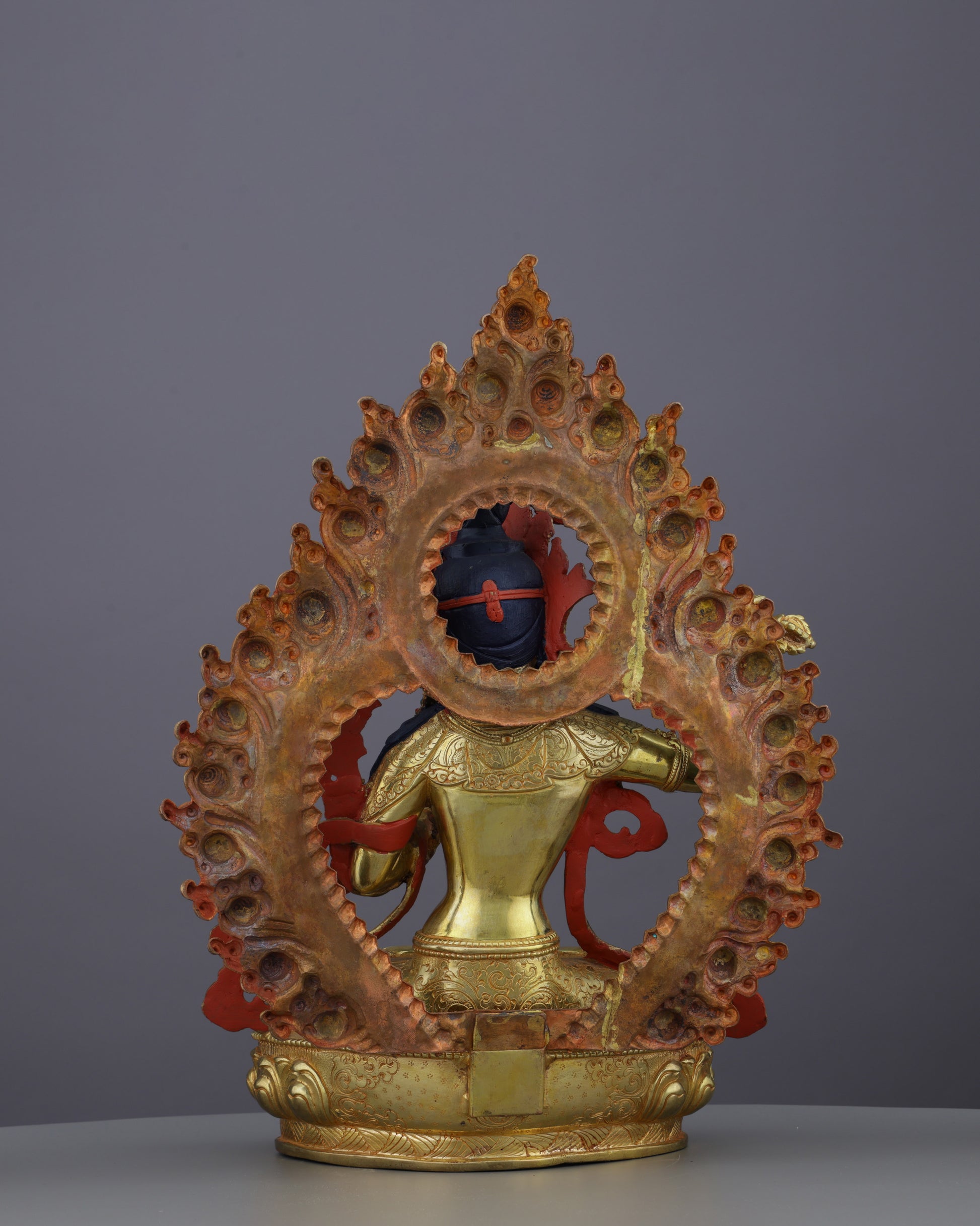 This masterpiece features authentic 24K gold gilding and gemstone inlays, reflecting supreme craftsmanship and attention to detail that makes it an ideal focal point for study spaces and meditation areas.